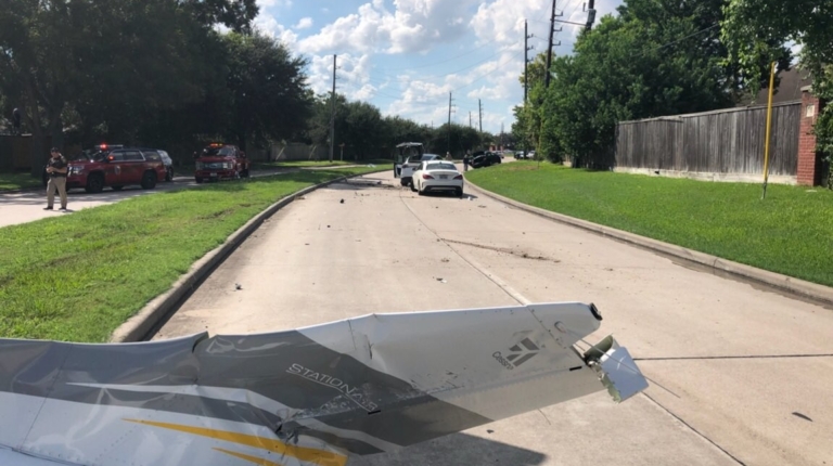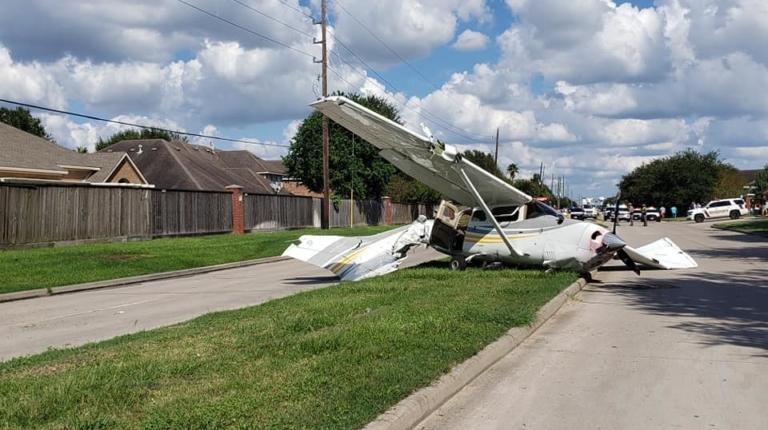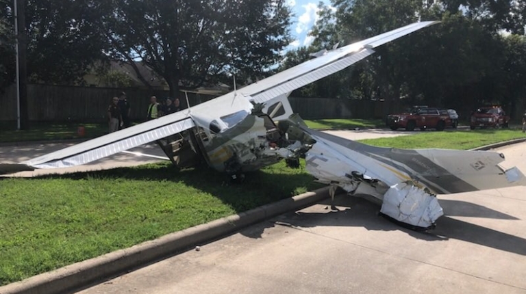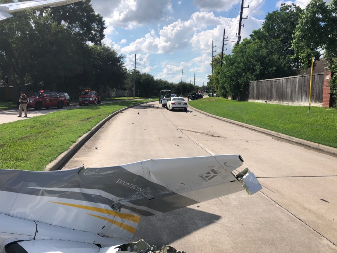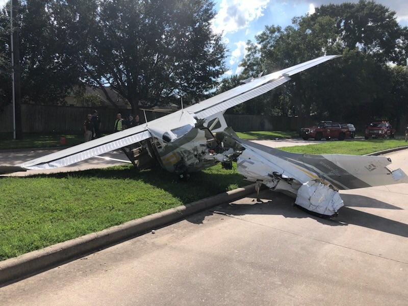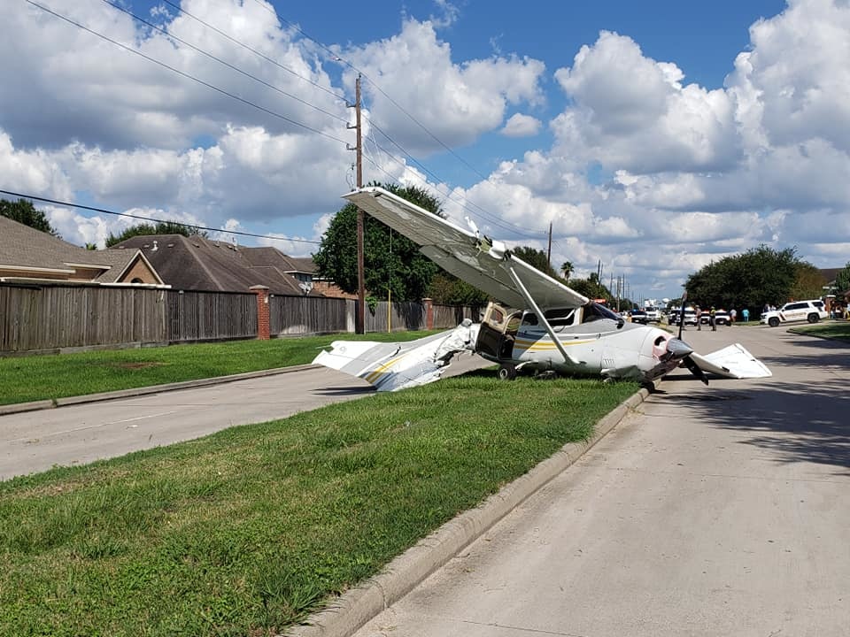 Необычное ДТП произошло в одном американских городов штата Техас. Самолет Сессна совершил аварийную посадку на трассу, при этом столкнувшись с двумя автомобилями.