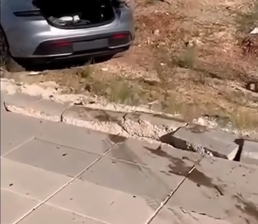 В результате мы услышали еще больше криков (уже не настолько восторженных), хруст и многочисленные скрипы, увидели поврежденный газон и разбитый каменный тротуар. Электрическому Порше Тайкан Турбо повредили бампер и, скорее всего, разбили подвеску.