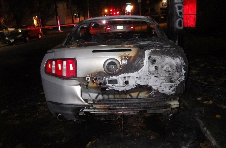 Противники новоизбранного президента США сначала побили, а потом подожгли и “расписали” Ford Mustang.