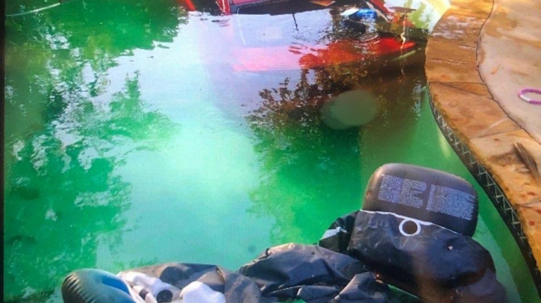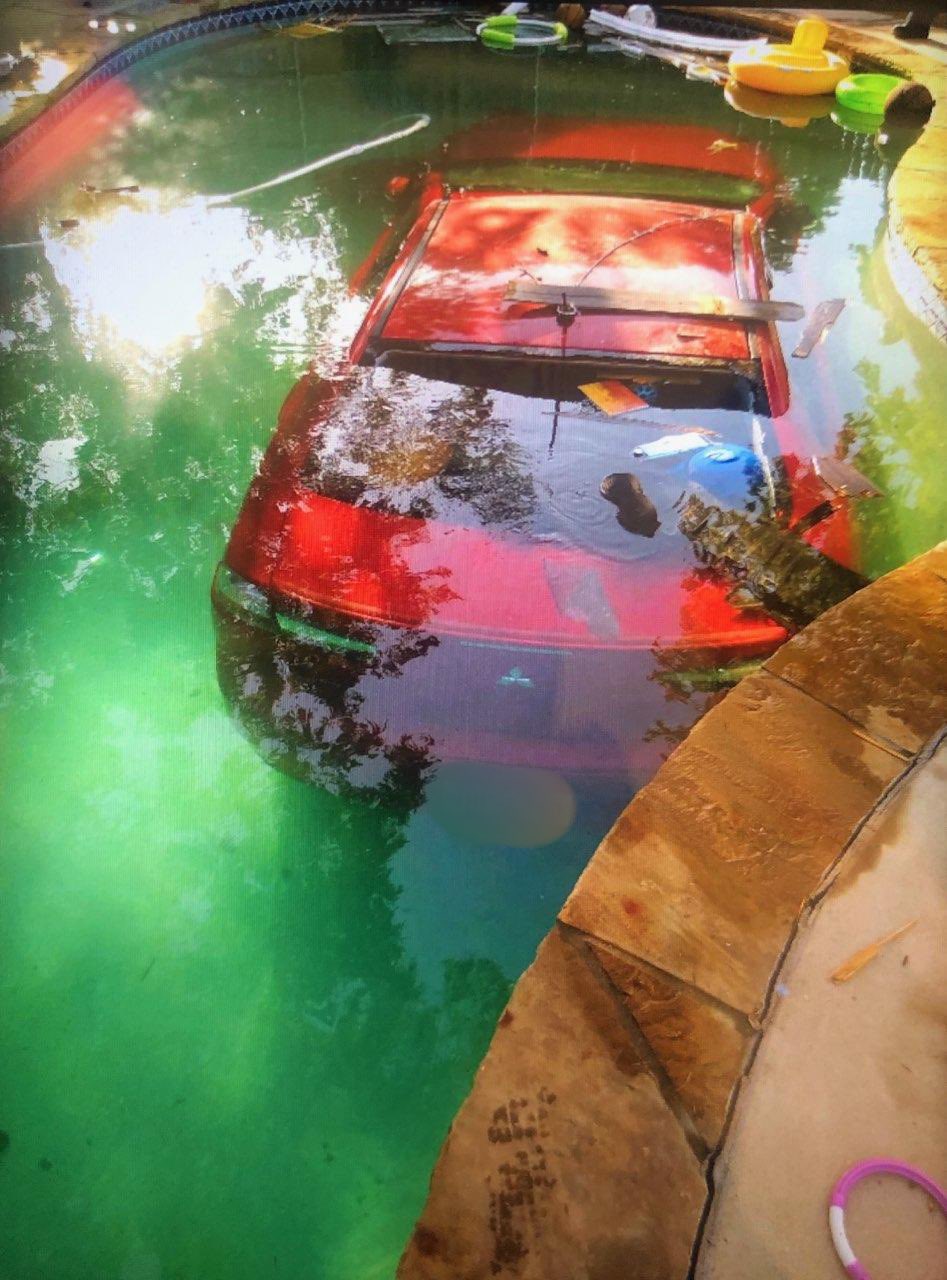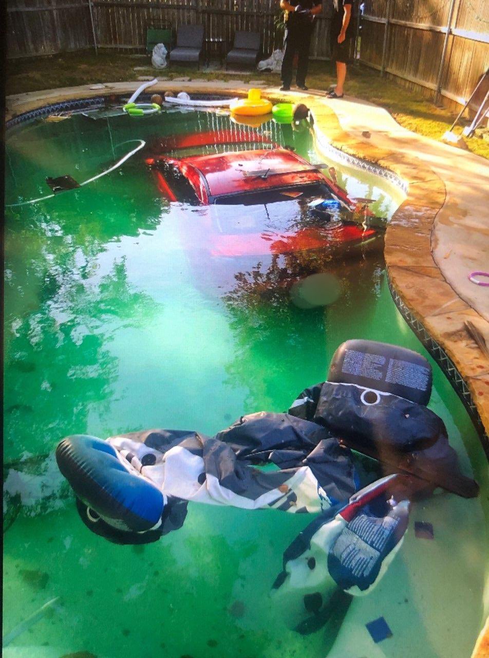 Інцидент стався в місті Арлінгтон, штат Техас. Інформацією та фотографіями з місця події поділився місцевий департамент поліції. Згідно з даними, водій червоного Mitsubishi Lancer, перебуваючи, імовірно, в стані алкогольного сп’яніння, врізався в кам’яну стіну, після чого зніс дерев’яний паркан і в’їхав на один із задніх дворів. Подолавши цю “смугу перешкод”, автомобіль впав у басейн і повністю занурився у воду. Варто відзначити, що незважаючи на доволі невеликий розмір басейну, водієві вдалося влучити точно в «ціль».