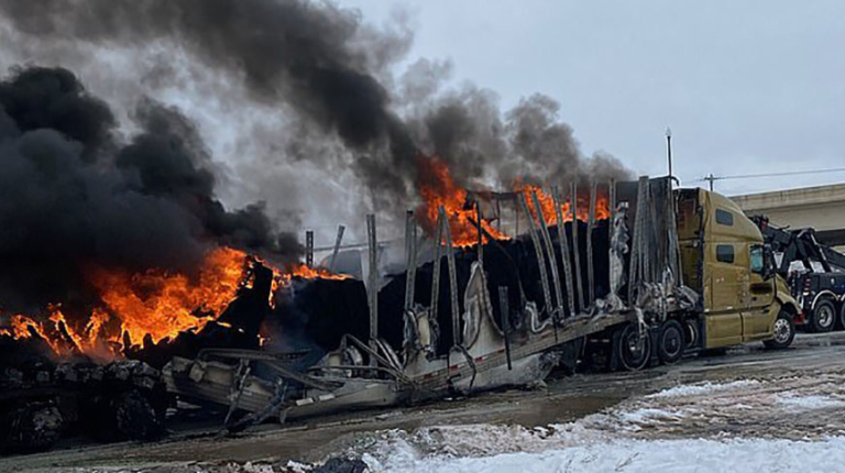 Ускладнило ситуацію те, що в однієї з вантажівок спалахнув моторний відсік. Полум’я за лічені хвилини охопило весь автомобіль і перекинулося на сусідні. Оскільки машини були затиснуті через ДТП, рятувальникам довгий час не вдавалося локалізувати пожежу. Унаслідок усі машини були знищені. На щастя, в аварії ніхто не загинув. Дев’ятеро людей госпіталізували з травмами різної тяжкості без загрози для життя.