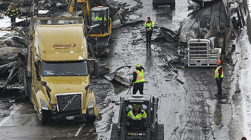 Перший сніг і шквальний вітер застали водіїв зненацька і стали причиною виникнення масштабного ДТП в штаті Міннесота, США. Спочатку не змогли впоратися з керуванням на слизькій дорозі водії двох вантажівок. Вони зіткнулися, перегородивши частину шосе. Потім в них, за інерцією, один за іншим врізалися легкові автомобілі та інші вантажівки. Загалом в аварії постраждали 29 машин, з яких — 15 фур і 14 легкових авто.