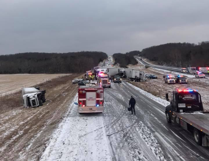 Зима всегда усложняет дорожные условия, особенно если вы к ней не готовы. В штате Миссури (США), по всей видимости, многие водители не ожидали такого снега, поэтому на одной из автомагистралей произошло большое количество ДТП.