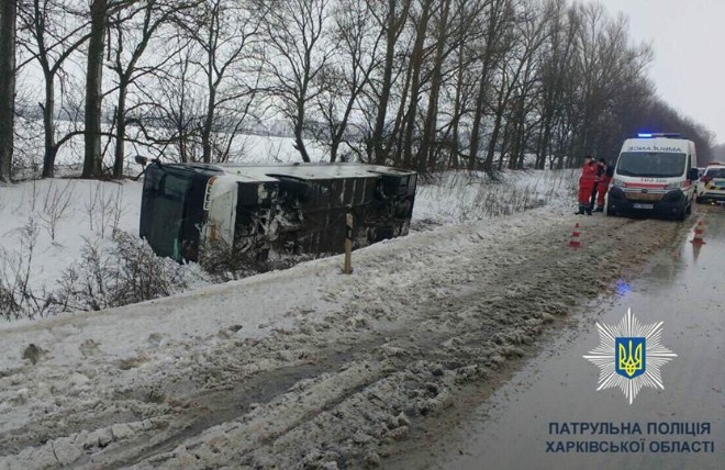 Происшествие случилось около села Чкаловское Чугуевского района в 7:45. В аварии серьезно никто не пострадал, все пассажиры и водитель отделались легкими ушибами.