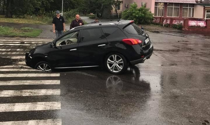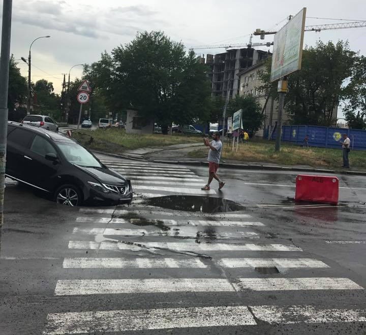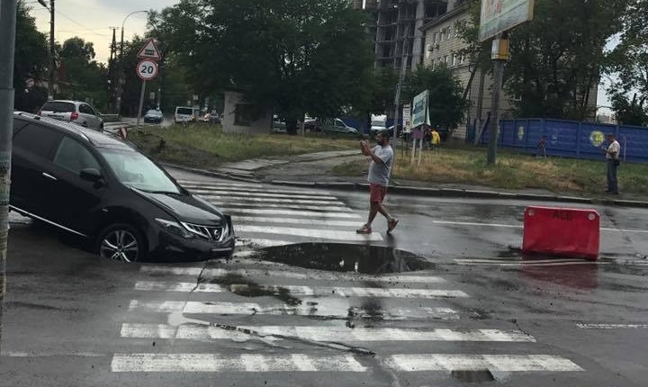 У Києві автомобіль провалився в яму просто на «зебрі»