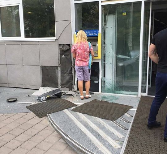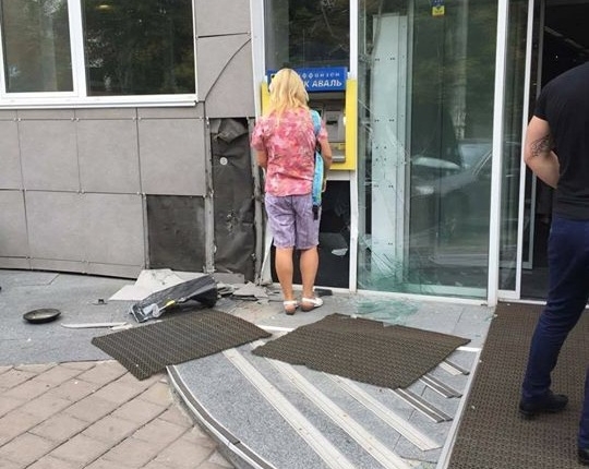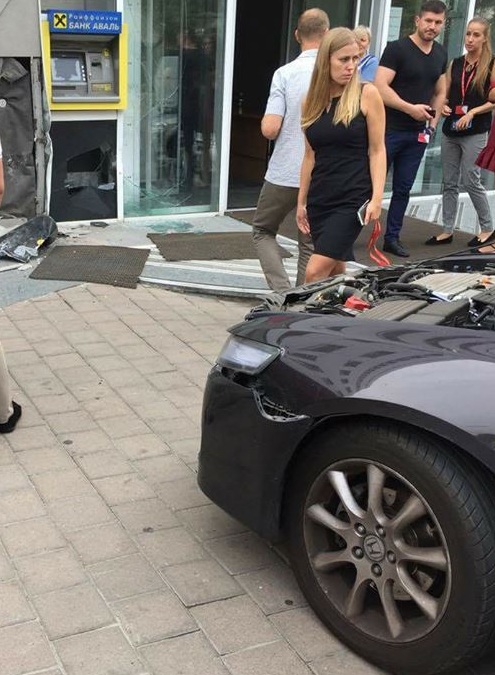 У ДТП ніхто не постраждав, проте у дверях офісної будівлі розбите скло. Крім того, серйозно пошкоджений банкомат біля входу у бізнес-центр.