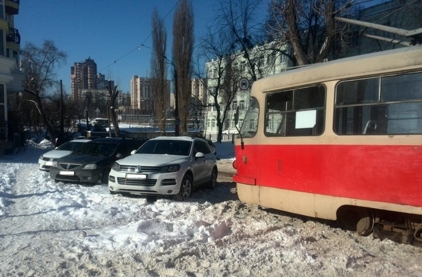Трудности парковки из-за большого количества выпавшего снега в Киеве автомобилисты решают по-своему. Вот, к примеру, на улице Коперника, что недалеко от метро «Лукьяновская» сразу три автомобиля оставили ночевать прямо на трамвайных путях. Водители решили ,что если они для отстоя трамваев, то по ним вообще никто не ездит. В итоге утром трамвай чудом избежал столкновения.