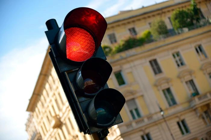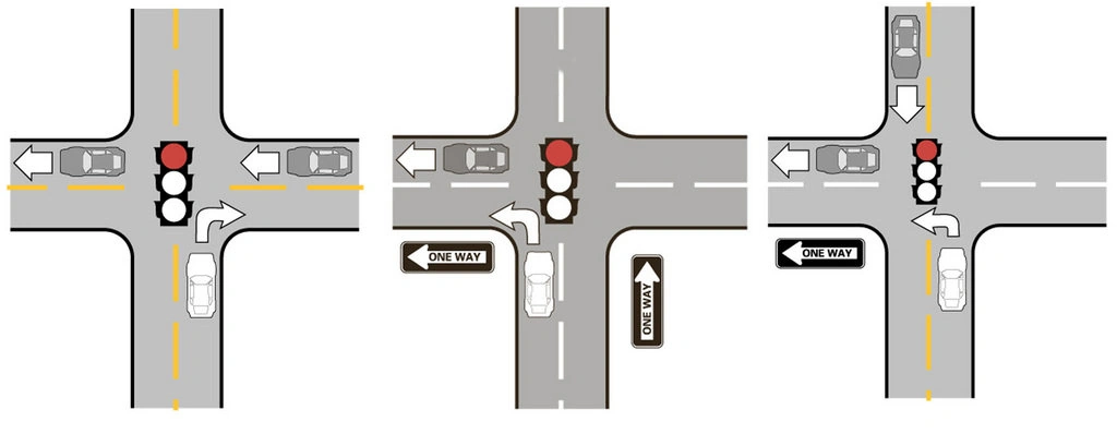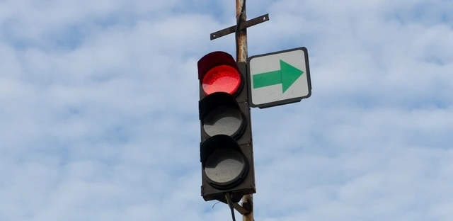 - Здійснювати правий або лівий поворот на червоне світло можна тільки в разі надання переваги руху пішоходів і без створення перешкод для інших учасників дорожнього руху, а також із зупиненням перед виконанням маневру.