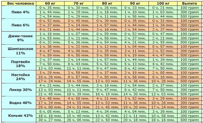 Разумеется, употреблять алкоголь нужно ответственно. В любом случае, лучше не увлекаться. А чтобы точно понимать, через какое время после застолья можно садиться за руль, предлагаем ознакомиться с подробной таблицей. Обратите внимание на свой вес, тип напитка и его количество.