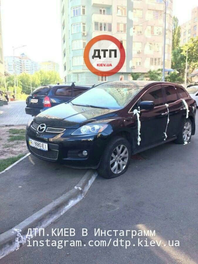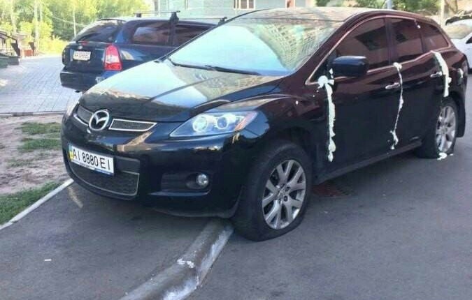 У результаті на автомобілі спустили колеса, а дверні прорізи задули монтажною піною.