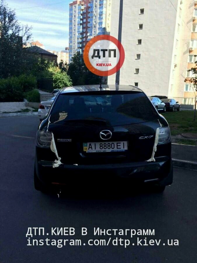 За інформацією «ДТП.КИЇВ» місцеві жителі покарали героя парковки за те, що він залишив свій кросовер на тротуарі, та ще й зі значним «виносом» корми на проїжджу частину.