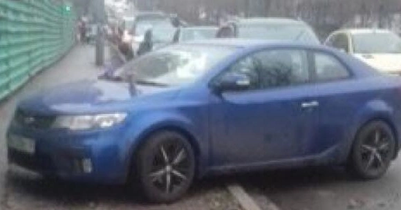 В Печерском районе Киева водитель Киа припарковал свою машину таким образом, что едва ли не полностью перекрыл проход по тротуару. Реакция людей соответствующая - капот его машины забросали мусором.