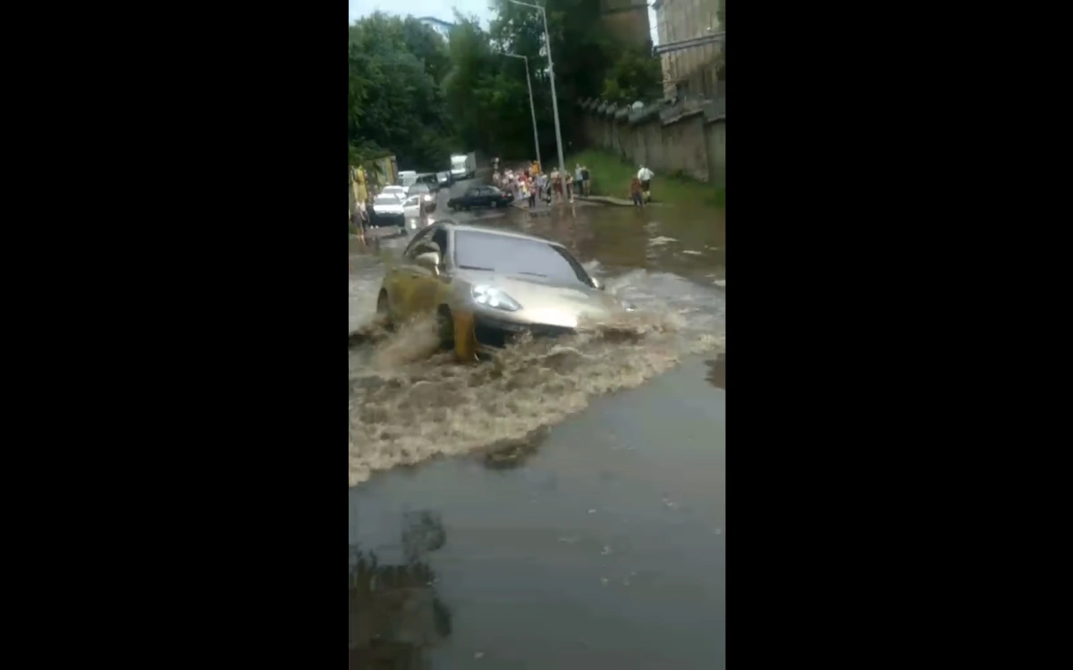 Якщо точніше, то камера зовнішнього спостереження зафіксувала момент, коли некерований КамАЗ-65117 покотився з пагорба точнісінько на припаркований Porsche Boxster (так, вантажівку забули поставити на гальмо...). Водій у цей час перебував у кузові, але його реакція була блискавичною - застрибнути в кабіну він не встиг, проте зупинити руками машину, упершись ногами в землю, у нього вийшло. Далі на ролику можна побачити, що до удару з автівкою, що стояла попереду, залишалося кілька сантиметрів.