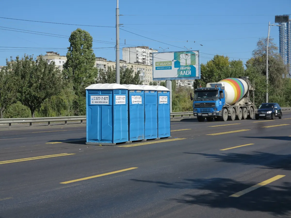 На проспекте Соборности в Киеве, прямо по центру проезжей части 7 октября был обнаружен самый необычный предмет, причем не один. Это четыре кабинки биотуалетов, которые стояли прямо на реверсивной полосе оживленной трассы.