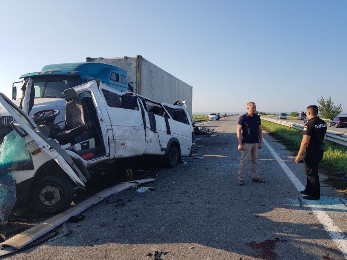 Вот и сегодня, 20 июля сразу две маршрутки попали в жуткие аварии. В обоих случаях автобусы буквально расплющило о припаркованные у обочины фуры. Первое ДТП произошло около 4 утра на 290-м км трассы Киев – Одесса, возле села Кривое Озеро Николаевской области. В маршрутке Volkswagen Crafter, следовавшей по маршруту Одесса – Гомель, было 17 пассажиров. В результате столкновения 5 из них погибли, а 12 получили тяжелые ранения.