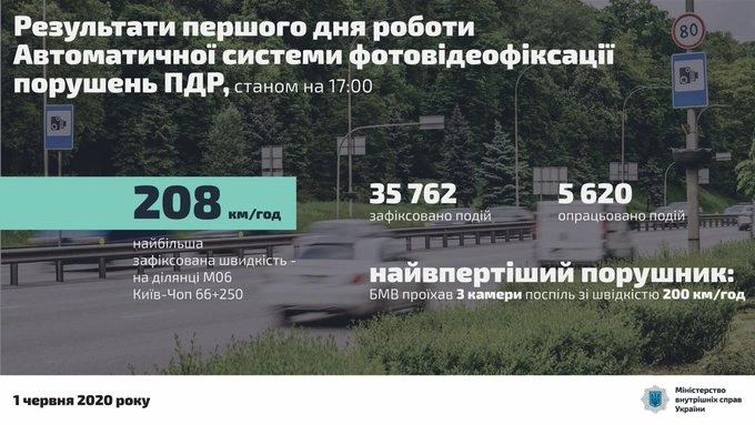 За первый день работы камеры в Киеве и области зафиксировали 35 762 нарушений. По словам Министра внутренних дел Украины Арсена Авакова, из всего количества нарушений пока обработали только 5620 и уже есть первые штрафы.
