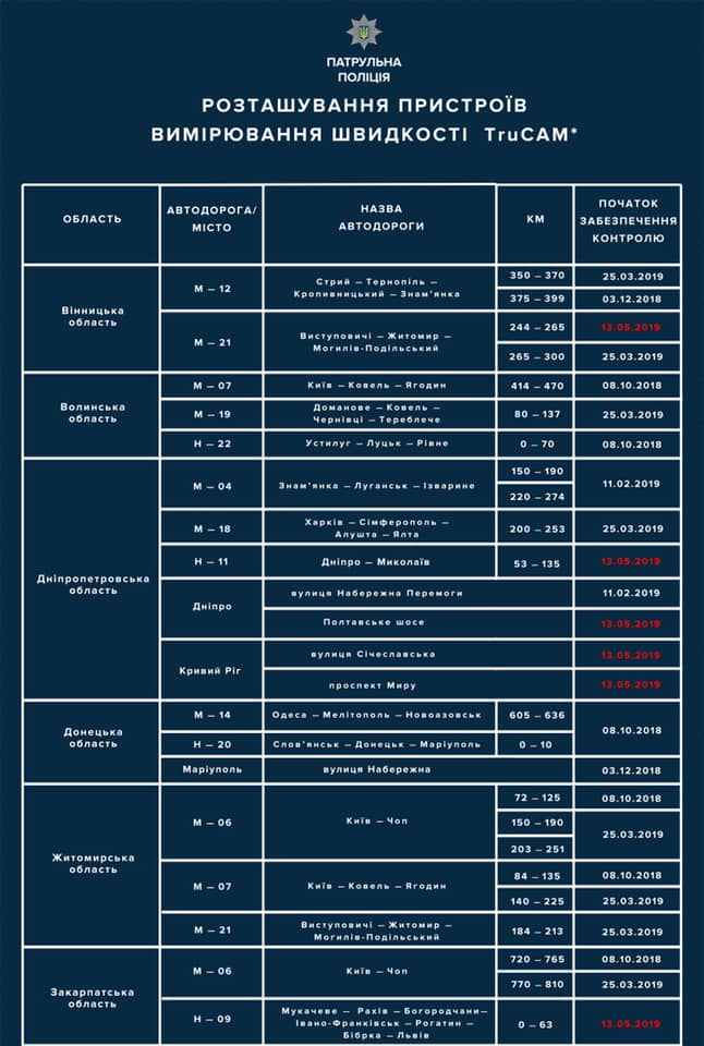 Заместитель начальника Департамента патрульной полиции Алексей Билошицкий сообщил на своей странице в соцсети Facebook о том, что количество приборов TruCAM на дорогах Украины теперь составляет ровно 100 штук (ранее было 75).