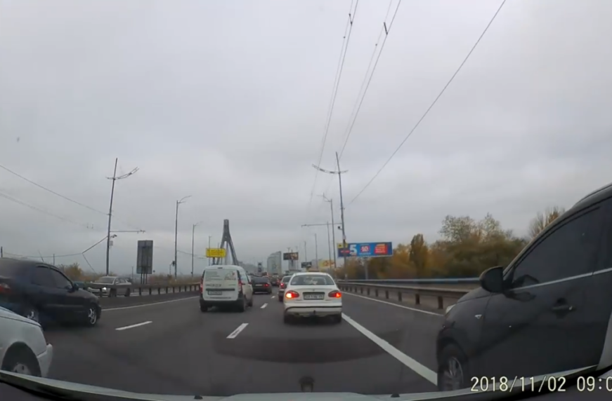 Наглядный тому пример – случай, произошедший недавно на Северном мосту в Киеве. Водитель кроссовера захотел ускориться в трафике и решил поехать по полосе ОС. Но вот беда – впереди оказался патруль полиции. Увидев правоохранителей, нарушитель захотел втиснуться в соседнюю полосу (собственно, для него и предназначенную), но сделать задуманное не получилось – его принципиально не пропустил другой автомобилист. В итоге, драйвер был остановлен копами.