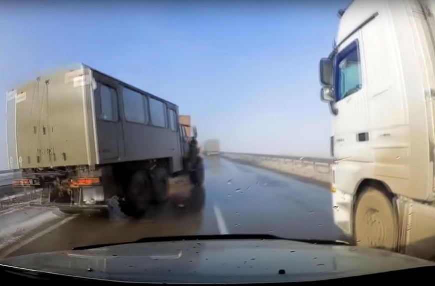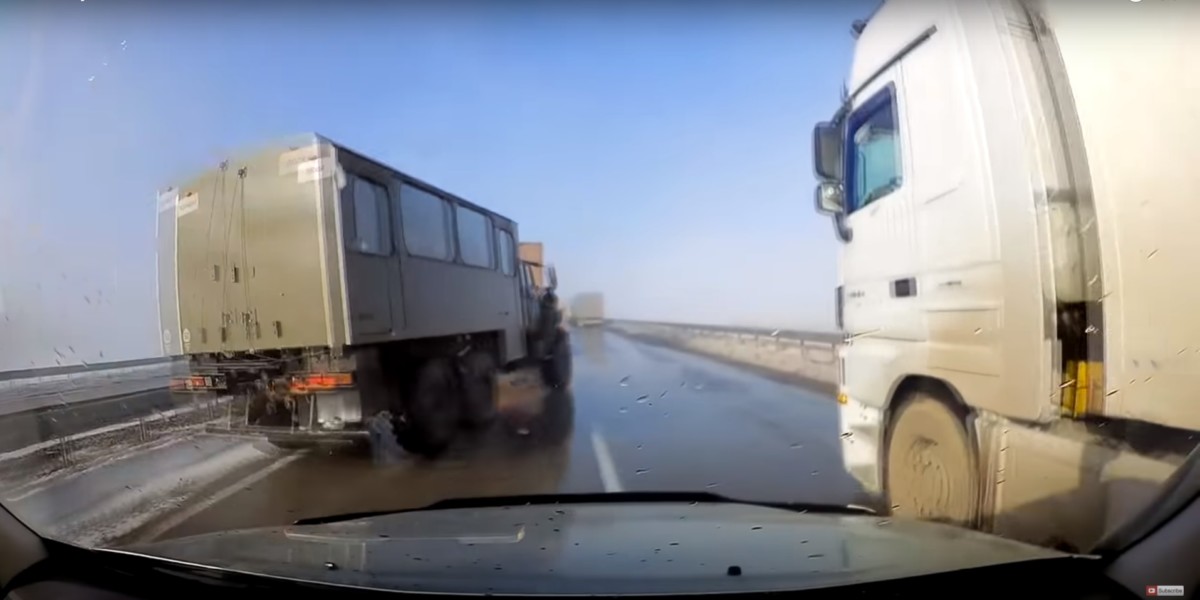 Грузовик Урал пролетел между фурами на скорости 130 км/ч (видео)