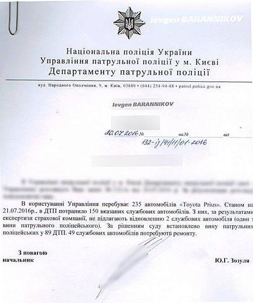Цю інформацію надав керівник столичної патрульної поліції Юрій Зозуля у відповідь на інформаційний запит жителя столиці Євгена Баранникова.