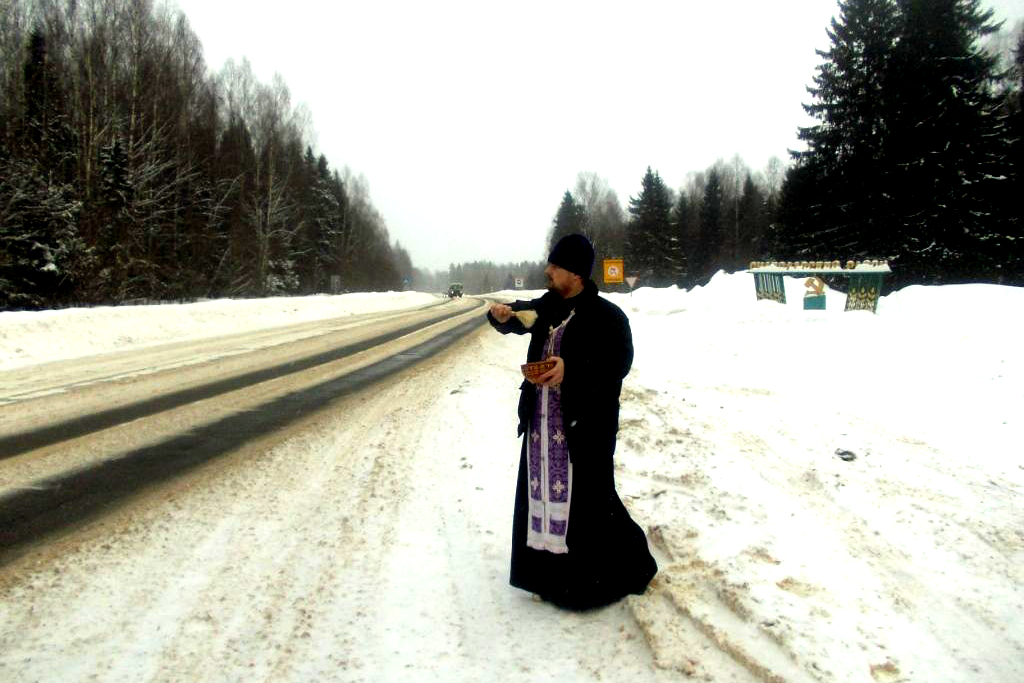 Есть в России на границе Костромского и Судиславского муниципальных районов на автодороге Кострома – В.Спасское участок дороги – между 21-м и 22-м километрами, который отличается особой аварийностью. Только за март 2013 года на нем случилось три серьезные аварии, в которых погибли три человека и еще восемь получили травмы различной степени тяжести. Предполагается, что прямой и внешне вовсе не опасный отрезок дороги провоцирует водителей чрезмерно превышать скорость, в результате чего, после потери контроля над автомобилем, вылетать на встречную полосу движения. Так вот, чтобы побороть ту незримую силу, которая подталкивает водителей к опрометчивым и опасным действиям, приводящим к трагическим последствиям, дорожная инспекция позвала на помощь церковь.