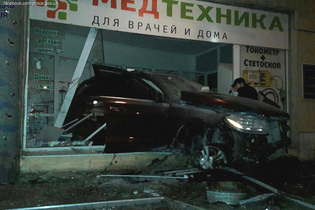 Этот дорожный инцидент произошел в воскресенье, 21 февраля, около 23:30, сообщает пресс-служба одесской патрульной полиции. В дежурную часть поступила информация о том, что на проспекте Гагарина по встречной полосе на большой скорости движется престижный внедорожник Mercedes МL-Class. Экипаж патрульных получил ориентировку на эту машину и начал преследование. Увидев проблесковые маячки, водитель внедорожника прибавил скорость. После чего, буквально в течение минуты, не справившись с управлением, автомобиль на полном ходу влетел по лестнице в магазин медоборудования.