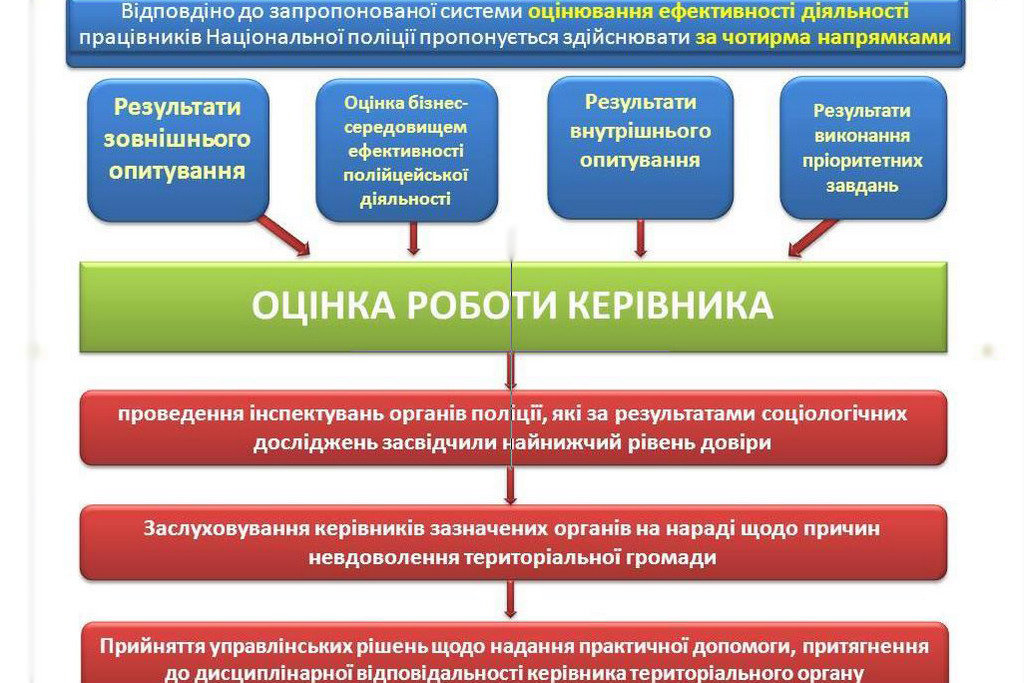 Оценку эффективности деятельности сотрудников Национальной полиции будем осуществлять по четырем направлениям: