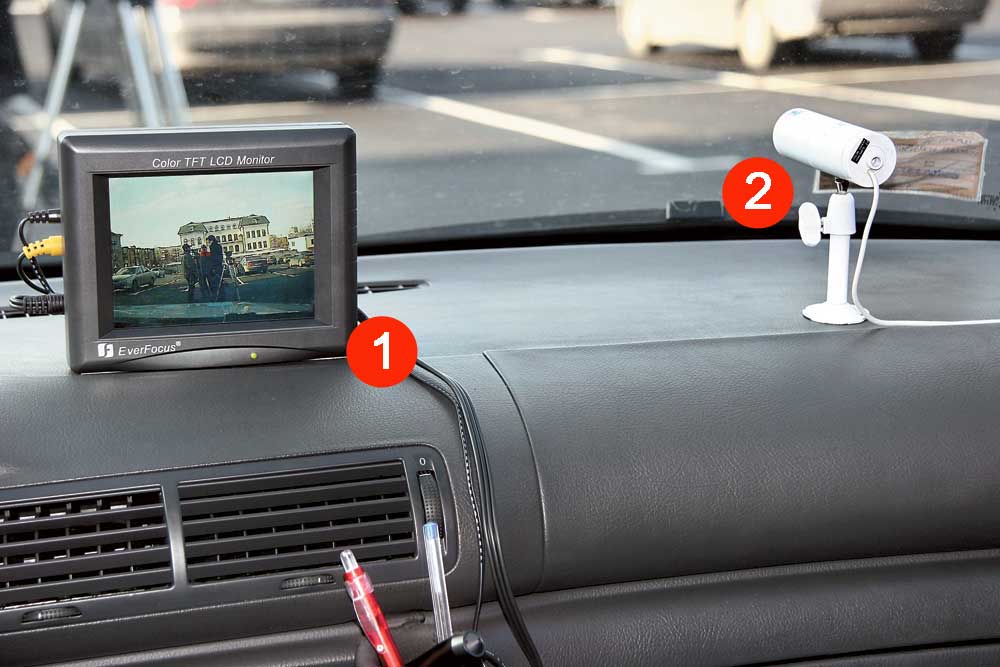 На мониторе (1) водителю можно будет продемонстрировать сам факт «прегрешения». Камера (2) комплекса системы видеонаблюдения – поворотная, что позволяет фиксировать нарушения под любым углом зрения. | В Украине радары с монитором, на который можно вывести фото- или видеофакт нарушения, применяются впервые. |