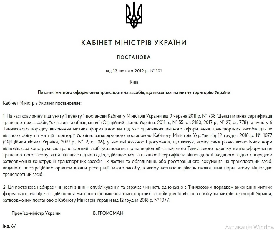 Во-вторых, объявленное ранее Кабмином упрощение оформления авто в связи с использованием данных техпаспорта вместо сертификата соответствия получило некоторые корректировки. Если к делу, текст постановления доработали — теперь он содержит положение о том, что справка о соответствии экологическим нормам не нужна только при непосредственно растаможке, и то если соответствующие данные (уровень экологичности) указаны в техпаспорте. Официальный текст нового постановления Кабинета Министров Украины смотрите тут.