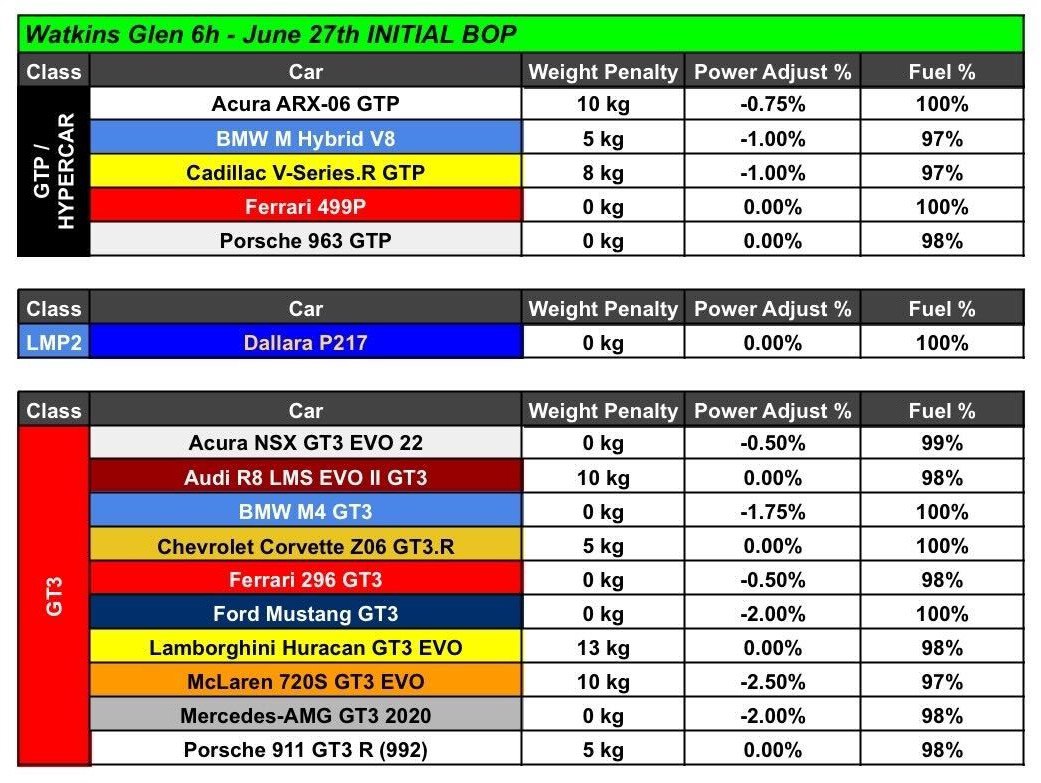 Класи, автомобілі та BOP (оновлюється в середу перед гонкою):