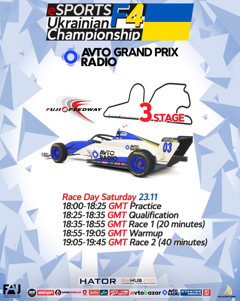 Комісія Цифрового Автоспорту запрошує на третій етап AVTORADIO Grand Prix офіційного ЧЕМПІОНАТУ УКРАІНИ З ЦИФРОВИХ ГОНОК та Відкритого Міжнародного Чемпіонату «ESPORTS UKRAINIAN F4 CHAMPIONSHIP».