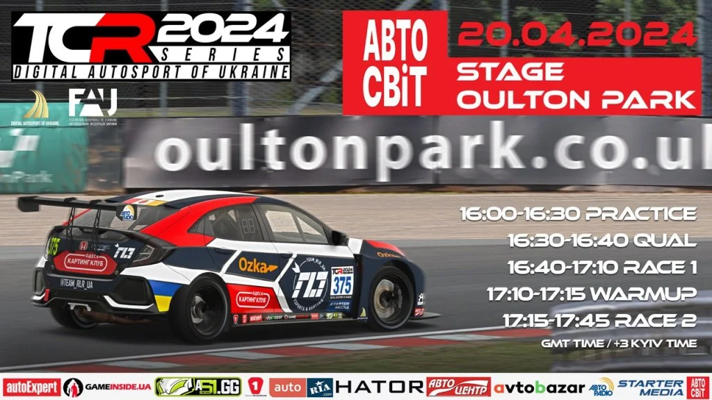 20 квітня 2024 року Комісія Цифрового Автоспорту запрошує ДРУГИЙ етап АВТОСВІТ Stage Oulton Park Міжнародної Серії змагань на автомобілях класу TCR під назвою DIGITAL AUTOSPORT OF UKRAINE: TCR Series-2024 (DAU TCR Series) на симуляторі iRacing.