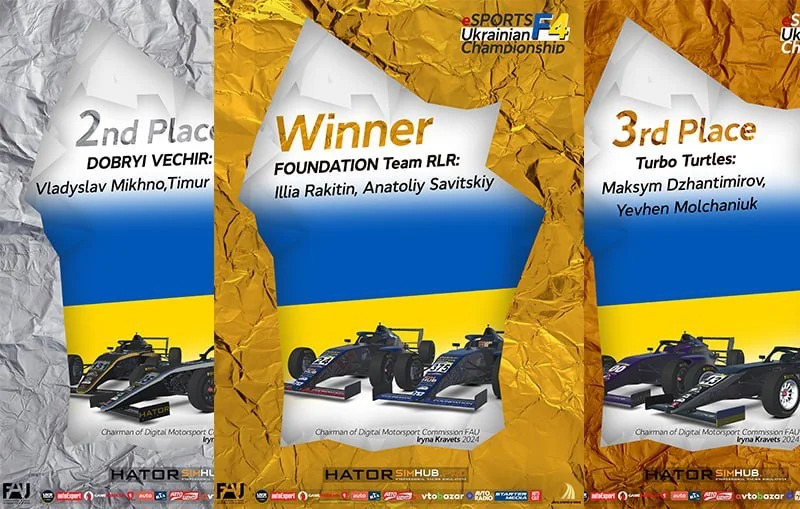 Тут все блакитно-жовте! Перемогу в командному заліку здобуває команда FOUNDATION Team RLR: Ілля Ракітін та Анатолій Савицький, це вже друга їхня перемога на формулі 4. Вітаємо!!!