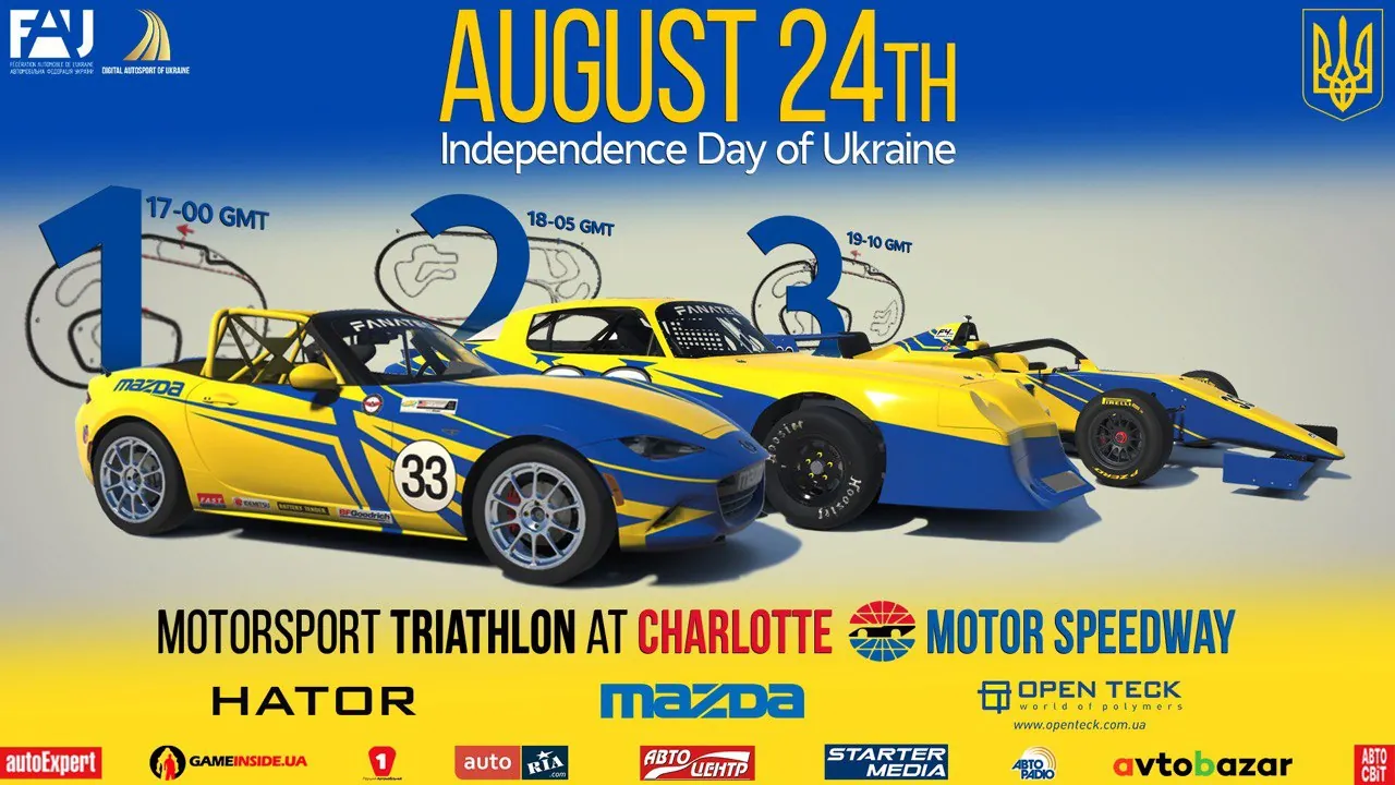 З нагоди Дня Незалежності України -2024 Комісія Цифрового Автоспорту Автомобільної Федерації України запрошує Вас прийняти участь у Змаганнях з віртуального автоспортивного Триатлону.