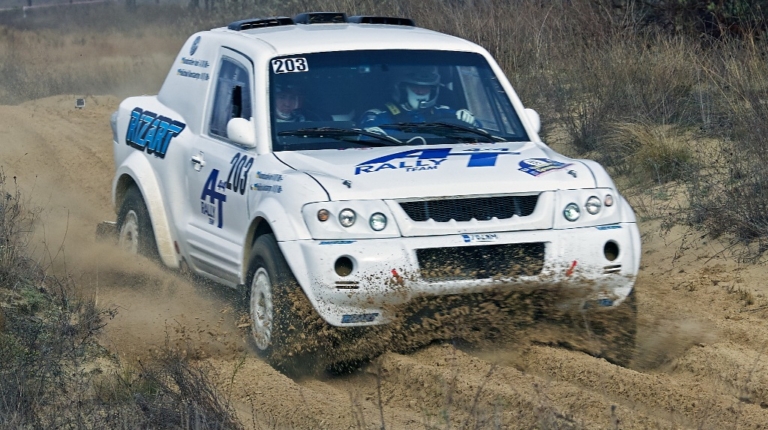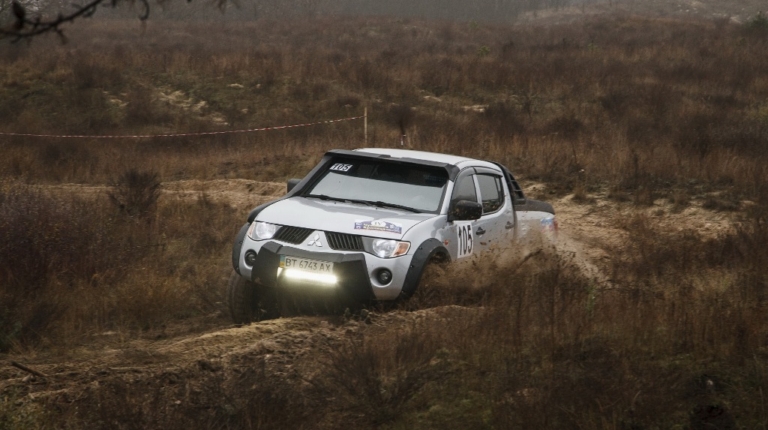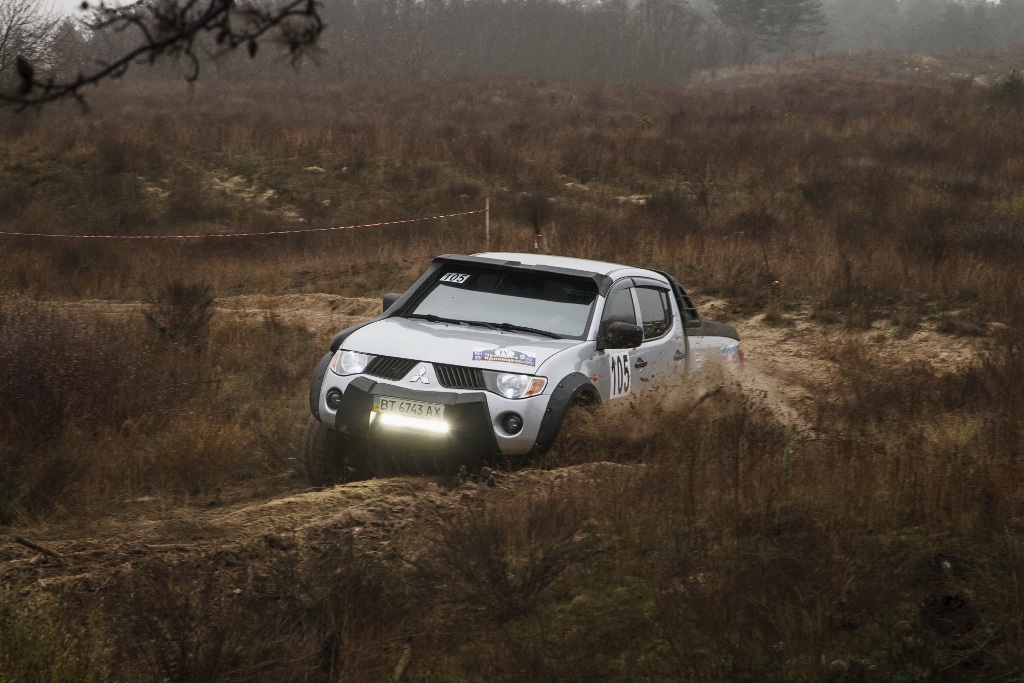 Нельзя не сказать и об Александре Нестеренко с Александром Чихуном, которые весь день уверенно шли на втором месте, но, увы. Перед заключительным кругом на их Mitsubishi L200 ломается привод, что приводит к сходу.