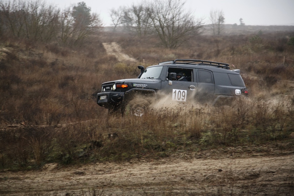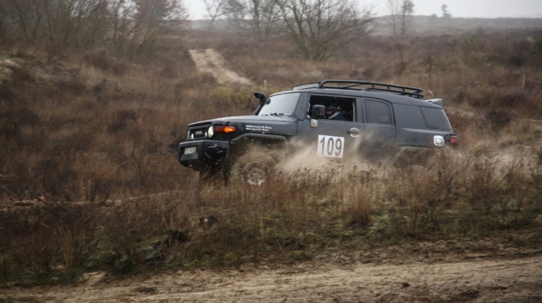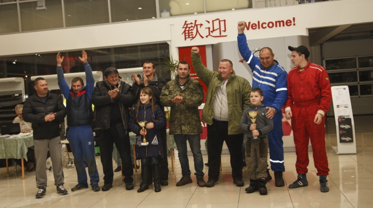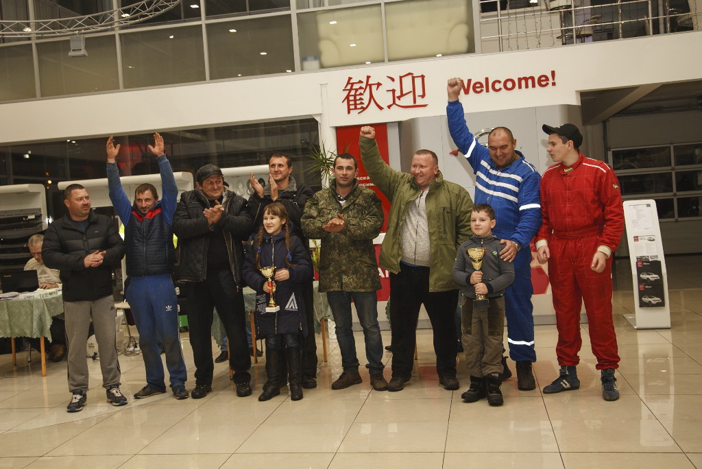 На радость зрителей, а их, несмотря на ненастную осеннюю погоду собралось немало, восемь пар мощных внедорожников принимали старт дважды. На довольно скользкой от моросящего дождя глинистой трассе большинство не стало сдерживаться, борясь за считанные секунды. Особенно зрелищной стала дуэль Николая Кузнецова с Олегом Фонаревым, выступающих на Toyota FJ Cruiser.