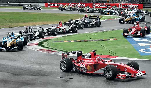 Впрочем, нельзя не признать, что и соперники помогали Михаэлю, как могли. Первым самоустранился бельгийский триумфатор Райкконен; двумя десятками кругов позже ошибся и вылетел в гравий Алонсо. Вот тут, кстати, возникает очень интересный вопрос: а почему маршалы отказались вытолкнуть Фернандо обратно на трассу, ведь мотор-то у него не заглох? Все помнят аналогичную ситуацию, когда в прошлом году на Гран-при Европы маршалы таким образом спасли застрявшего Михаэля Шумахера (а возможно, и его шестой титул)? Так что, правила за год изменились? Или прав Алонсо, заявивший после гонки, что его машина «просто выкрашена не в тот цвет»?