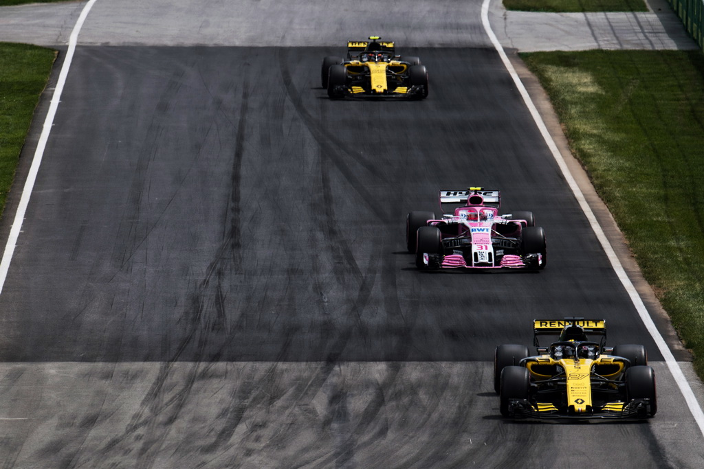 Боротьби у середині пелотону було трохи більше. На старті Естебан Окон пройшов Ніко Хюлькенберга та вийшов на сьоме місце. Але після рестарту справи Force India пішли скрутно. Спершу Серхіо Перес намагався пройти Карлоса Сайнса, але явно перестарався, хоча скаржився на іспанця, а потім на піт-стопі Окона сталися проблеми із заміною колеса.