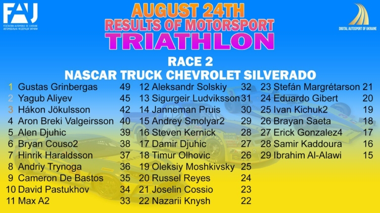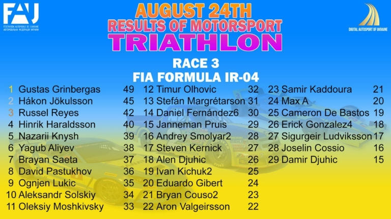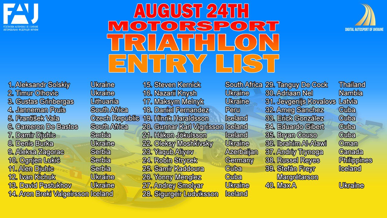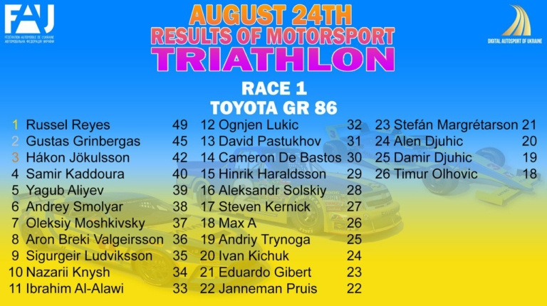 24 серпня 2025 року з нагоди Дня Незалежності України Комісія Цифрового Автоспорту Автомобільної Федерації України провела вже традиційні міжнародні Змагання з віртуального автоспортивного Триатлону.