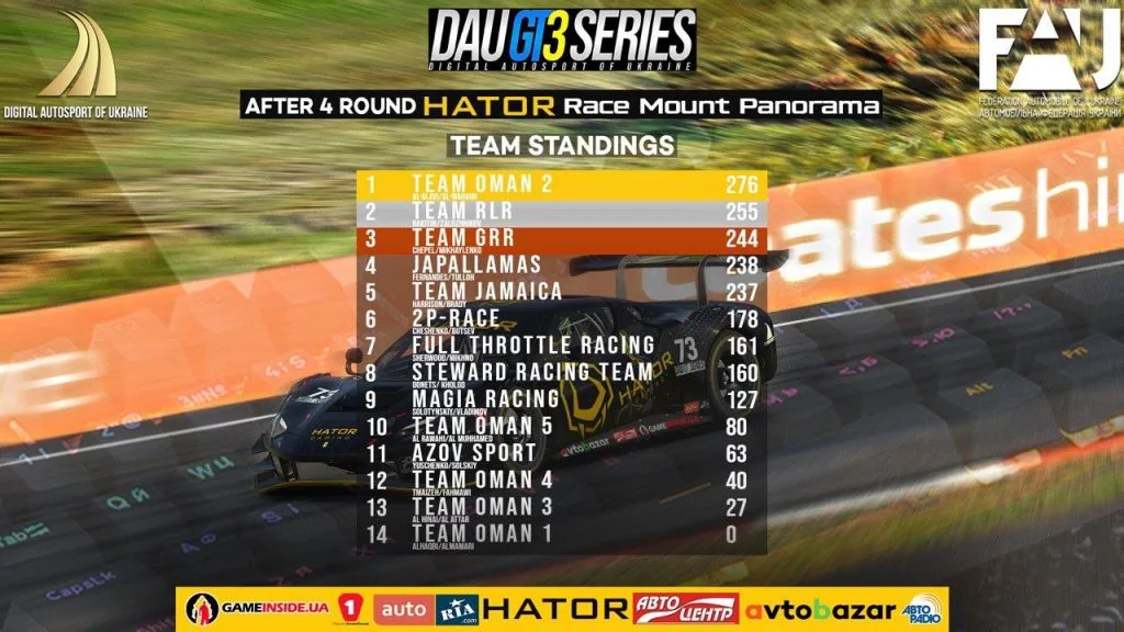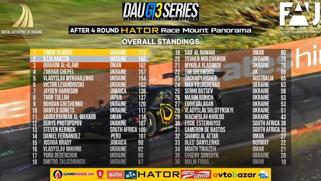 23 лютого 2024 року КЦА ФАУ провела ЧЕТВЕРТИЙ етап HATOR Race Mount Panorama Міжнародній Серії змагань на автомобілях класу GT3 під назвою DAU GT3 Series (DIGITAL AUTOSPORT OF UKRAINE: GT3 solo endurance Series-2024. Season 1) на симуляторі iRacing.
