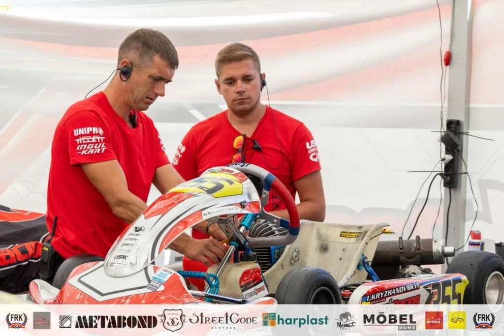 (З лівого боку знаходиться механік Роман Гордієнко. По правій стороні- тренер Ігор Тимченко)