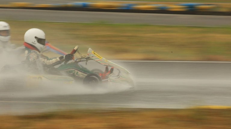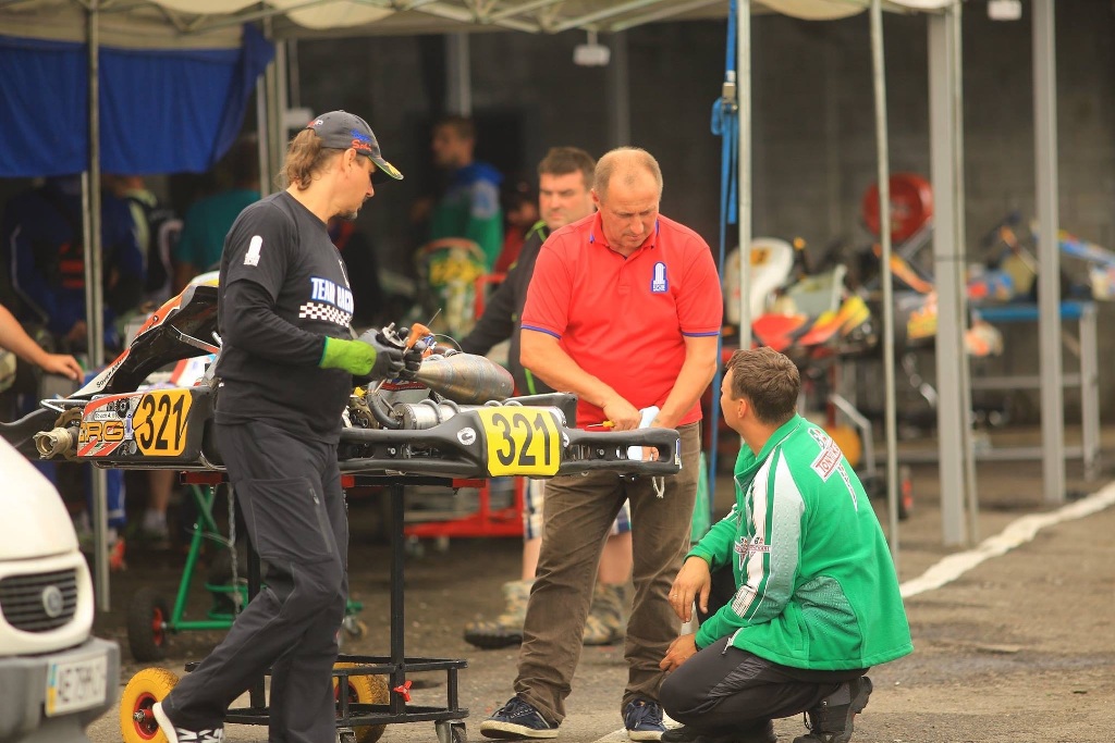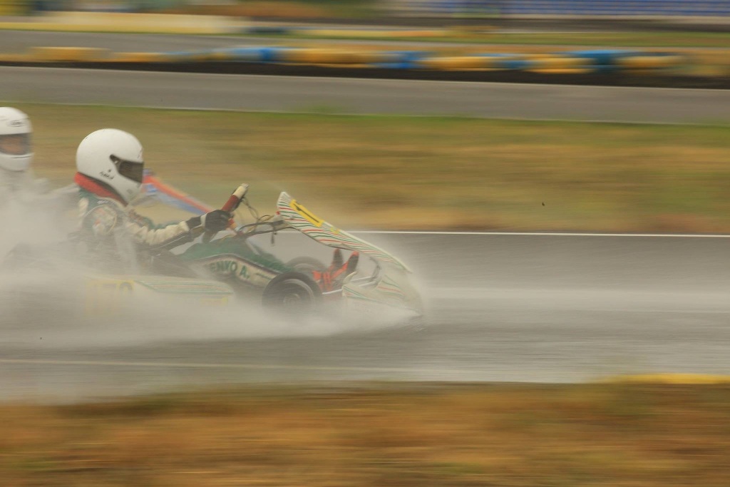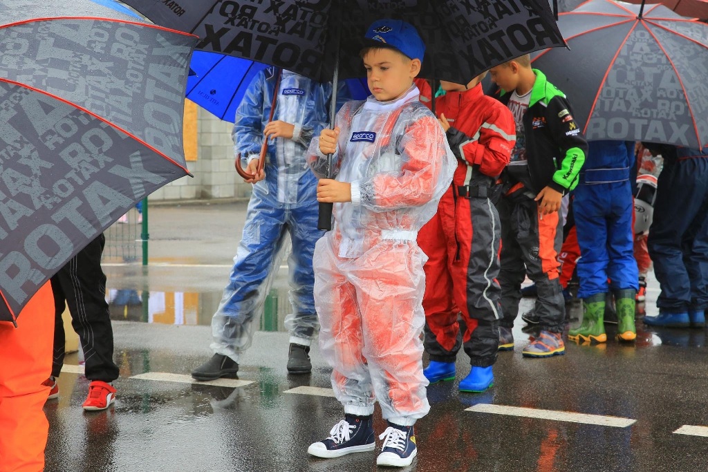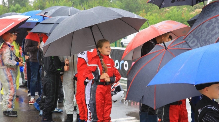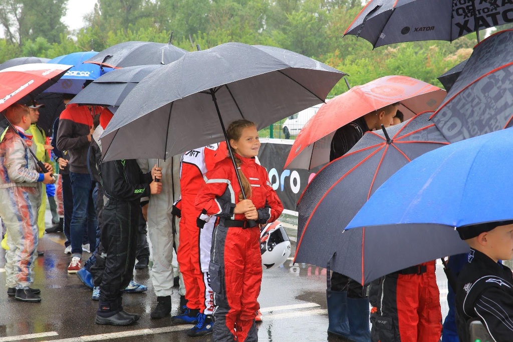 Один з них стосується погодних умов – таке різномаїття зустрічається не часто. Суботні тренування, кваліфікаційні заїзди та відбіркові хіти пройшли на сухому треку з чудовою сонячною погодою. Але вже в неділю вранці механікам довелося напружено працювати для зміни всіх налаштувань шасі, оскільки прокинувшись перед важливим змагальним днем учасники побачили повільно накрапаю чий дощ і повністю затягнуте хмарами небо над Кам’янським. І хоча гаджети показували, що вже з обіду має з’явитися сонце, від того не ставало легше, оскільки вже з 9-ї години ранку розпочиналися „розігріви“ у всіх класах. Дощ продовжував накрапувати і під час всіх перших фіналів пілоти мали змогу продемонструвати свою майстерність у пілотуванні гоночними машинами та вмінні стабільно вести гонку на мокрому покритті. Але, починаючи з обіду дощ дійсно припиняється і яскраве Сонце достатньо швидко висушує трасу. Звичайно, найбільше такому перебігу подій “зраділи” механіки та інженери, оскільки їм в черговий раз необхідно було переналаштувати машини на нові умови, оскільки другі фінали у всіх класах проводяться вже в режимі сухої гонки.
