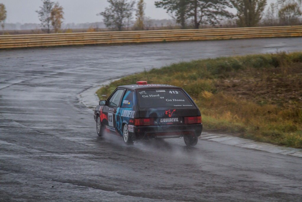 Команда Школи Автодрому «Чайка» перевзула машини Дмитра Жайворонка і Сергія Юнашева в дощову резину, тоді як чемпіон України Андрій Євтушенко вирішив стартувати на сліку, що стало фатальною помилкою.