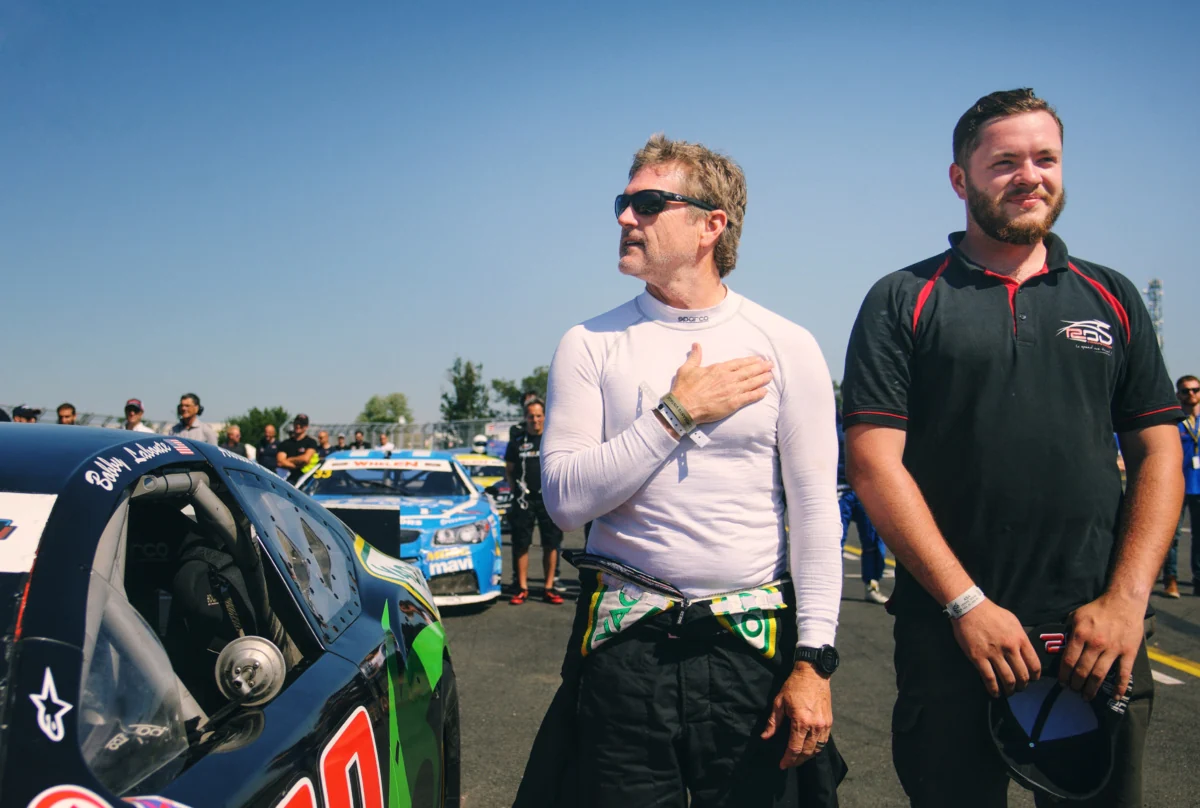 Второй полуфинал возглавляют бельгийцы – Стинис Лонжин и Энтони Кумпен. Последний кстати выигрывал чемпионат в 2016-м, а также является одним из тех, кто пробовал свои силы в одной из серий NASCAR за океаном. Лабонте стартует третьим, но через несколько кругов сходит с дистанции из-за проблем со сцеплением. Сказать, что Бобби был разочарован после гонки – значит ничего не сказать. Механики пытаются реанимировать машину к финальному заезду, хоть и стартовать теперь Лабонте может только из последнего ряда. Но чуда не происходит. Гонка для американца в этот день закончена и все надежды теперь переносятся на воскресенье. В финале на овале появляется 19 машин. И скажу я вам, что это очень эффектное зрелище, особенно если находишься прямо за бетонным отбойником на вершине виража. Страшновато, но невероятно интересно. В этом заезде было все: обгоны, контакты, желтые флаги, эффектная авария Энтони Кумпена и Марка Гуссенса, ну и уверенная победа Фредерика Габиллона, который не дал соперникам в этой гонке ни малейшего шанса. Впереди всех ждала пауза в несколько часов. К заезду Elite2 техника должна была быть приведена в порядок. Но организаторы не позволили зрителям скучать. Заезды чемпионата Legends Cars Cup, дрифт, в конце концов автограф-сессия пилотов NASCAR–все происходило четко по указанному заранее графику. Пока фанаты выстраиваются в очередь за автографами, я встречаю испанскую гонщицу Кармен Боикс Гил. Она благодарит меня за прошлогоднее фото, которое уже и на ее рекламных флаерах напечатано. Желаю удачи в предстоящей гонке и отправляюсь дальше. Словом далеко не все спортсмены вышли пообщаться с фанатами. Не было здесь и Бобби Лабонте, к большому разочарованию автора этих строк, да и остальной публики тоже.