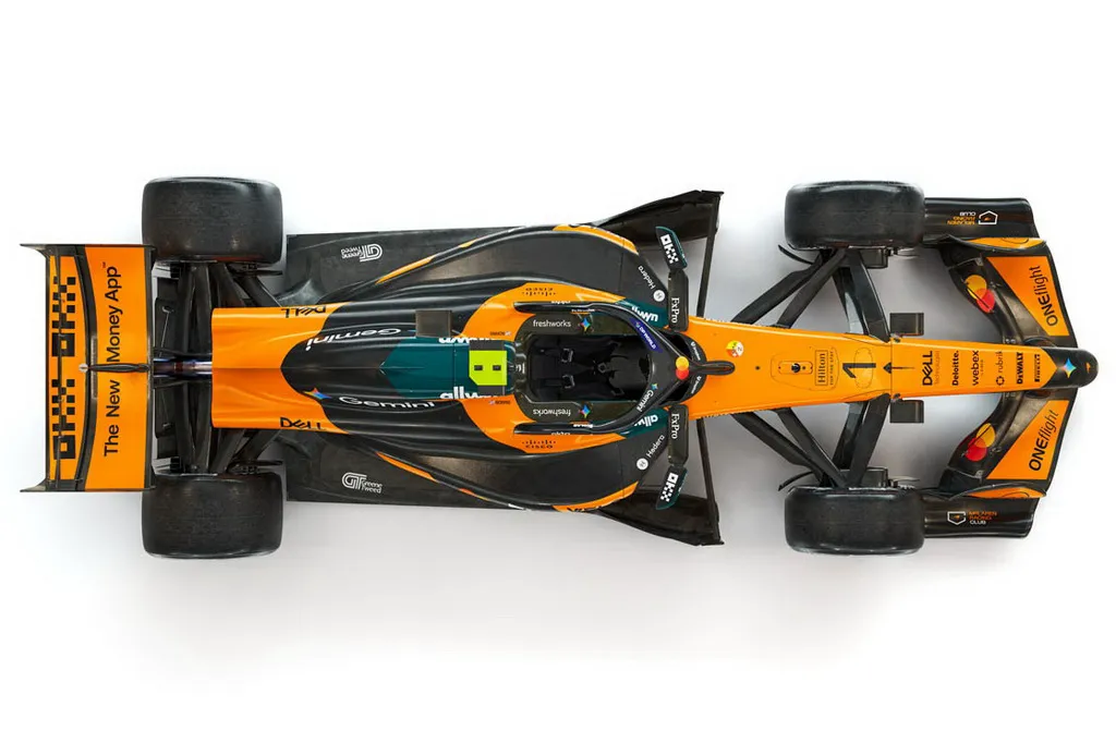 Ця кольорова гамма також простежується в комбінезонах пілотів команди: Ландо Норріс та Оскар Піастрі будуть одягнені у вогнетривкі комбінезони з передньою частиною кольору папайї та спиною антрацитового кольору, що підкреслить номери 1 та 81 у кольорах команди.