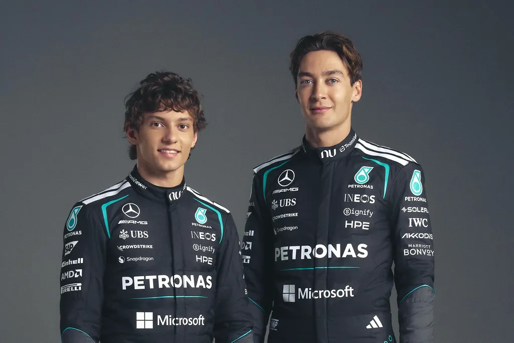 Пілоти команди Mercedes-AMG Petronas F1 Team Кімі Антонеллі (ліворуч) та Джордж Рассел