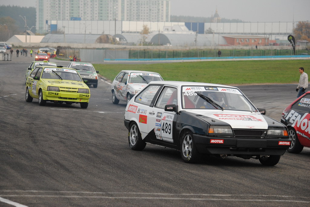 Ну а те болельщики, кто следил за перипетиями в Чемпионате Украины по кольцевым гонкам на протяжении года, были одарены еще и нешуточной интригой. Чемпион Украины в классе «Лада-1500» определился накануне – им стал победивший вновь Сергей Юнашев. Вопрос с серебряным призером по итогам года также был решен заранее – несмотря на то, что судьи не допустили к воскресному старту провинившегося накануне Андрея Скуза, он также был вне досягаемости для остальных, а вот на «бронзу» тут претендовало сразу четыре участника!
