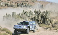 Стартовавший первым Шишерит вновь остановился для ремонта – теперь передней трансмиссии, Жинель де Вильер, стартовавший вторым, и вовсе в прямом смысле слова прогуливался в тени кустов (!), ожидая, когда проедут лидеры VW, так как теперь он играет роль технички быстрого реагирования. Так что стартовавший 4-м аль-Аттия довольно быстро обогнав Орландо Терранову, был вынужден фактически открывать этап! Сайнц же после проколов колес накануне стартовал 9-м и поначалу все соперники более чем вежливо пропускали лидера вперед: и новый хозяин команды Mitsubishi Николя Мислин и Робби Гордон буквально посторонились в сторону. К середине этапа Сайнц смог отыграть у едущего первым и постоянно рискующего Нассера почти 5 минут! Но потом начались пески – вотчина катарца и… Hummer-а Гордона.