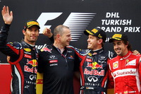 «Стартовать с грязной стороны трассы – это еще не конец света, – говорил Уэббер после финиша. – Но я потратил пару кругов на то, чтобы обогнать Росберга. Потом меня зазвали на пит-стоп чуть раньше, чем я рассчитывал. А схватка с Фернандо вообще получилась очень неожиданной – он отлично ехал, но под конец гонки у меня резина оказалась свежее. Ну а Себастьян проехал еще одну отличную гонку».