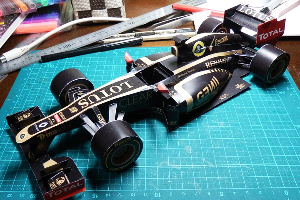 А команда Lotus F1 пошла несколько иным путем. На своей официальной страничке в Facebook все желающие, предварительно оставив свой «лайк», могут скачать развертку масштабной модели болида Lotus E20, а также инструкцию по сборке. Суть идеи заключается в том, чтобы распечатать все развертки на шести листах плотной бумаги, а затем, следуя инструкции, повторить работу инженеров и конструкторов и собрать болид Ф1.